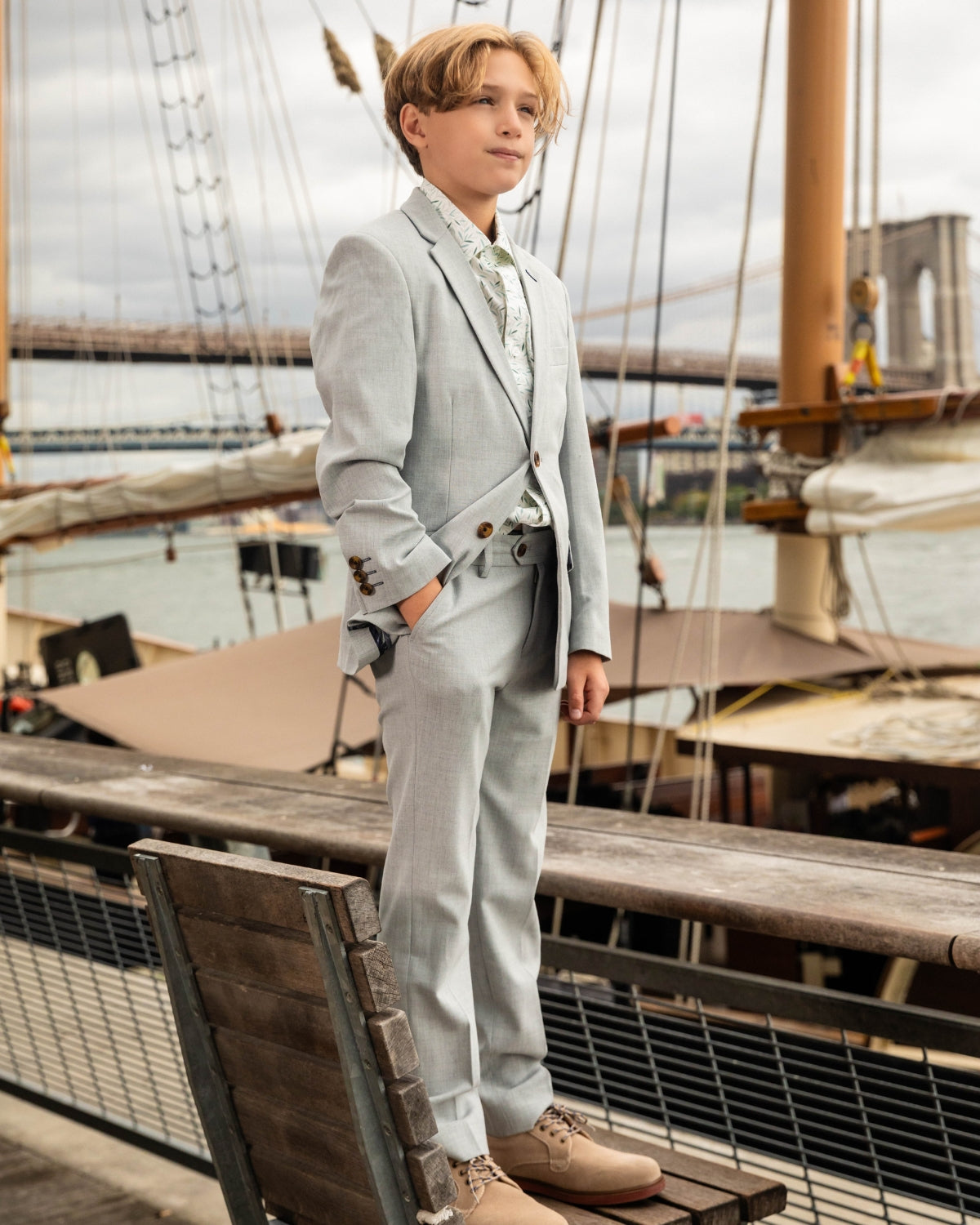 When it comes to boy’s clothes, we’ve mastered the art of prep. Think perfectly cut blazers and a polished suit jacket for formal flair, paired with versatile tops that can go from classroom to celebration without skipping a beat. And when the weather calls for extra layers, our jackets and formal outerwear keep the look sharp while still standing up to playground adventures.