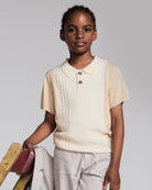 Beige Sweater Knit Polo