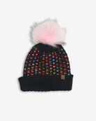 Keep your little one warm and stylish with the Kathleen Beanie in Black! This cozy winter accessory features a playful pom-pom on top and a vibrant rainbow print that adds a fun pop of color to any outfit. Made from soft, high-quality materials, it’s perfect for chilly days at the playground or family outings. The classic black color makes it easy to pair with any winter jacket, while the cheerful rainbow design will brighten up the coldest days. Parents will love the snug fit and durability, while kids will adore the fun style and warmth. Ready for adventure in any weather!